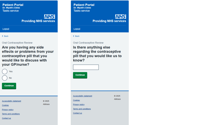 | Questionnaire submission | Pill check | 304387004 |